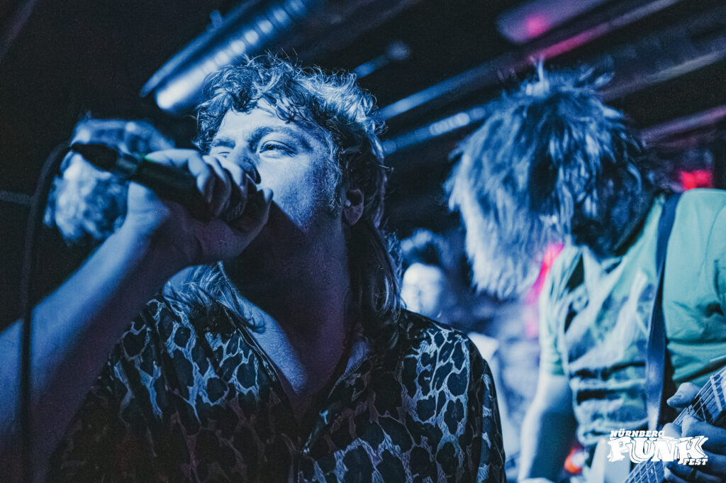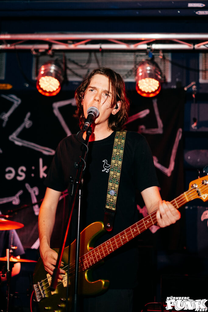 Viel Zeit zum Ärgern blieb nicht, denn DÄÄCHT aus Regensburg überraschten mich positiv. Ihre Musik wird als Mischung aus frühem Hardcore und Punk mit psychedelischem Grunge und Power-Pop beschrieben – mich erinnerte das stellenweise an IDLES. Sänger Clement Hoffer war Energizer und Mittelpunkt der Band zugleich.