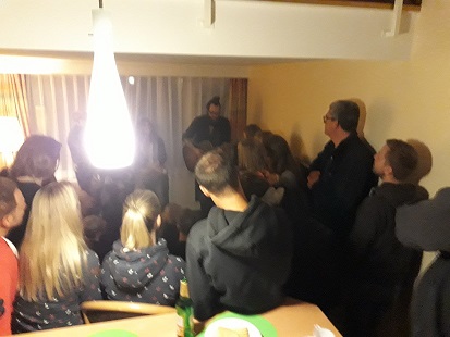 Der schlechteste Witz des Tages wurde bereits morgens beim Frühstück verbraten. Person A: „Heute spielt DIE REGIERUNG im Baltic Saal!“ Darauf Person B: „Echt jetzt? Mit Angela Merkel an der Lead-Gitarre, oder was?“. Hahaha, was haben wir gelacht. Umso bedauerlicher, dass ich aufgrund des eng gesteckten Zeitplans nur wenige Lieder der Hamburger Schule-Absolventen sehen konnte. Dennoch schön, Songs wie „Es hat keinen Namen“ oder „Ein Idiot mehr“ mal live gesehen zu haben. Eine weitere Besonderheit des Rolling Stone Weekenders ist das sogenannte „Wohnzimmerkonzert“. Hierbei handelt es sich um einen exklusiven Auftritt in einem der Unterkünfte, der aufgrund der sehr begrenzten Platzkapazitäten nicht öffentlich zugänglich ist. Die Tickets hierfür werden ausschließlich verlost, wobei ich bis heute jedoch nicht weiß, wo man sich für diese Verlosung hätte bewerben können. War im Endeffekt aber auch egal, denn für einen erfahrener Party-Crasher ist es natürlich kein Problem, sich trotzdem hier einzuschleichen. So spielte der Hamburger Singer/Songwriter JOHN ALLEN in einem Bungalow vor ca. 25 Leuten, während ein großer Topf Glühwein auf dem Herd vor sich hinköchelte und bereits vorweihnachtliche Stimmung verbreitete. Über JOHN ALLEN selber schrieb unser Schreiber Otti einmal sinngemäß, dass er trotz der Melancholie seiner Lieder so viel Fröhlichkeit ausstrahle, dass niemals schlechte Stimmung aufkommt, mögen die Themen auch noch so schwer und persönlich sein. Das trifft den Nagel ziemlich auf den Kopf, und entsprechend elektrisiert wurde sein Auftritt vom Publikum aufgenommen.